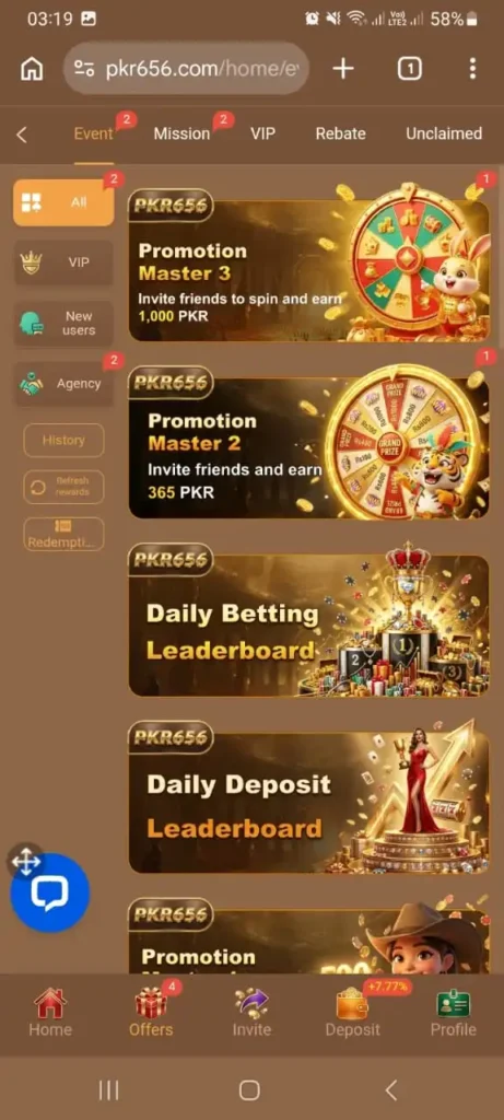 PKR656 allows users to earn money while enjoying different games on the platform. It provides real earning opportunities through simple gameplay and consistent rewards. Moreover, users can increase their earnings by participating in daily activities. Therefore, it works as a reliable earning game for many players.